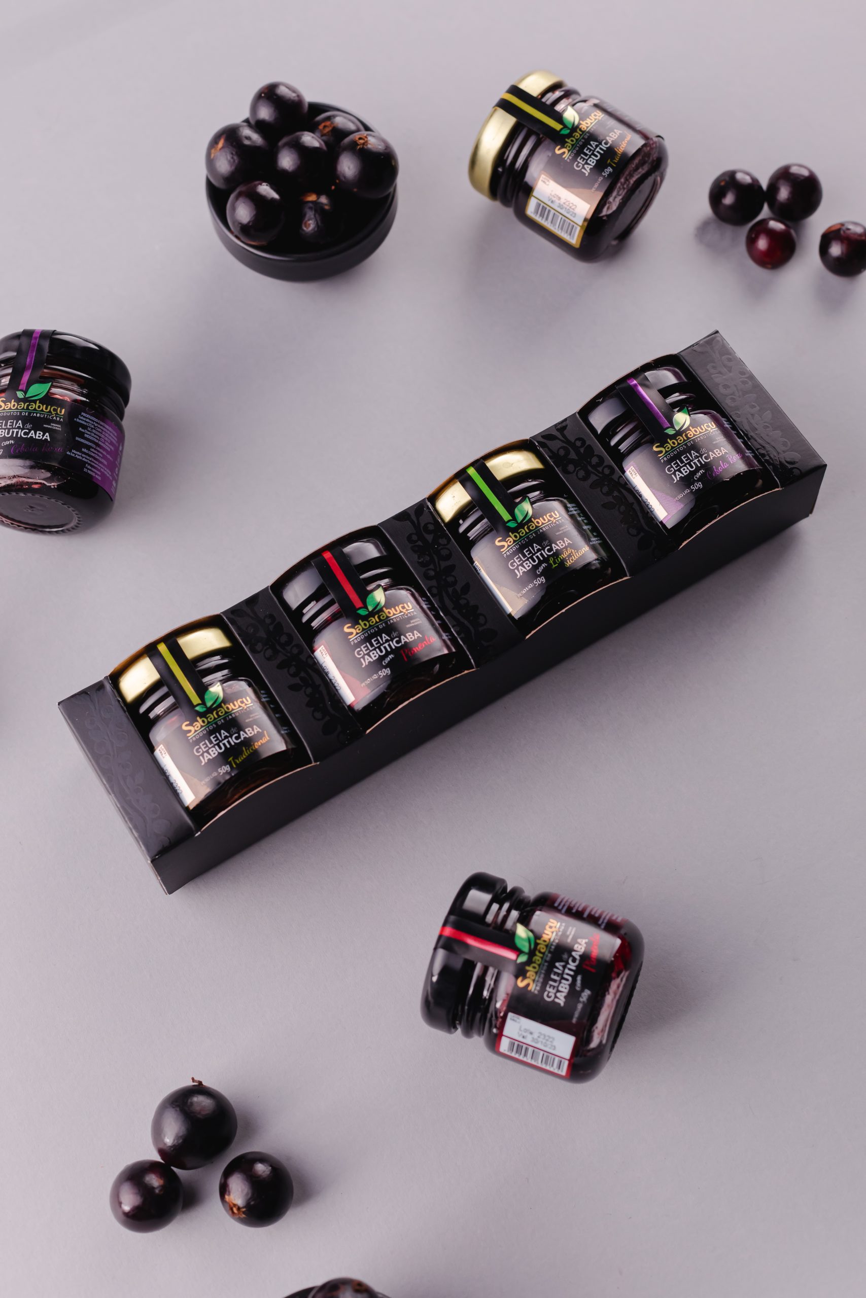 com uma variedade de sabores que vão desde o tradicional até sabores inovadores como pimenta, cebola roxa e limão siciliano. Nosso kit de mini geleias de jabuticaba é ideal para acompanhar um café da manhã especial ou surpreender seus convidados em um jantar.
